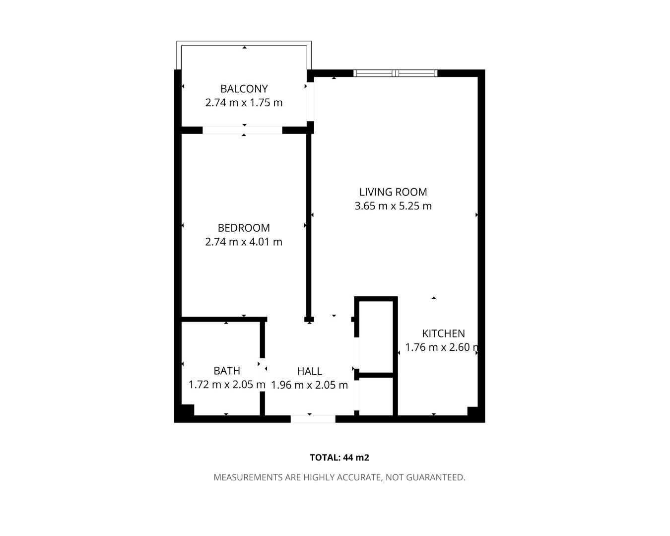 Total floor area c.44Sq.m / 473 Sq.ft